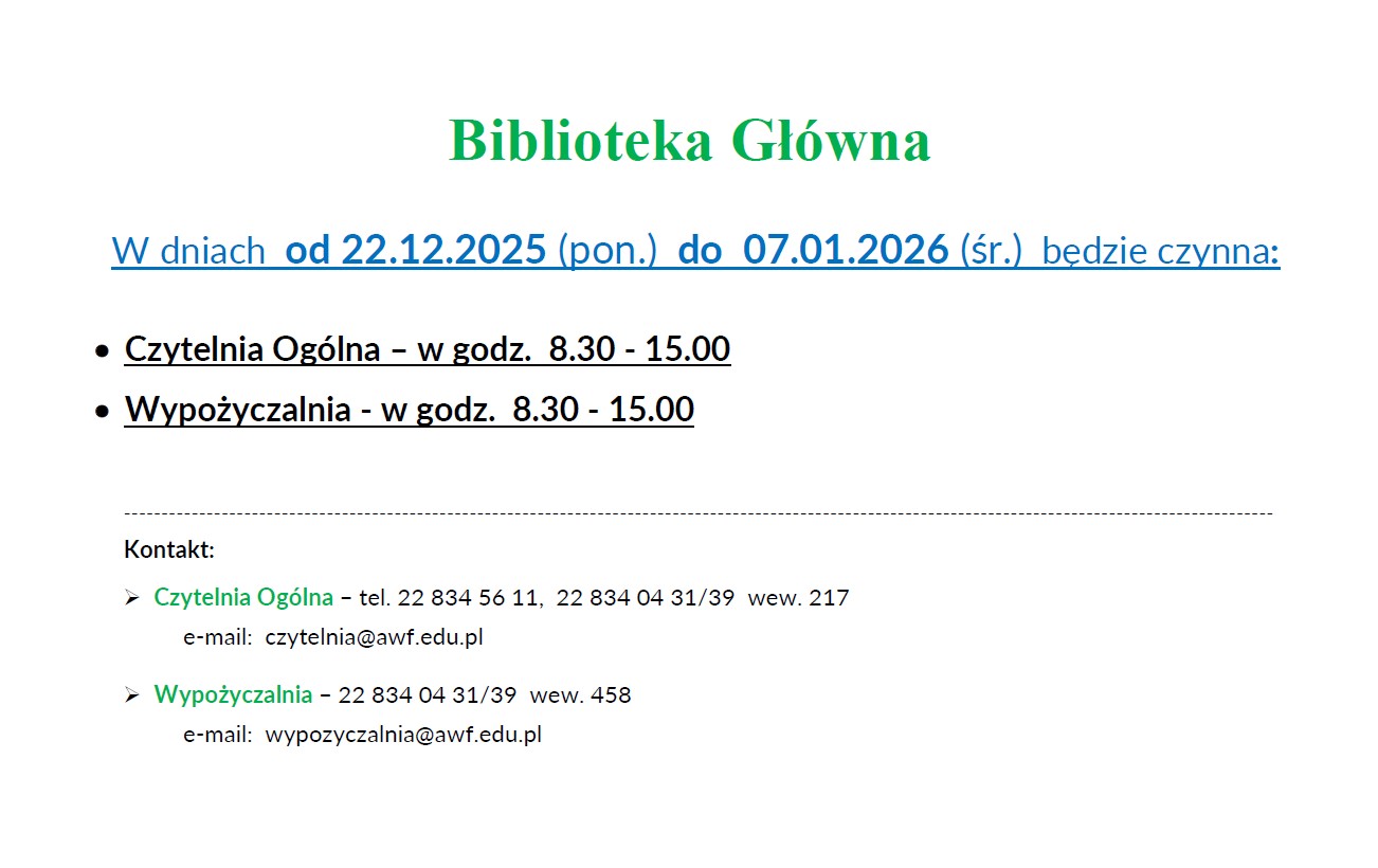 Przypominamy, że w czasie zamknięcia Biblioteki korzystać można z jej wszystkich zasobów elektronicznych