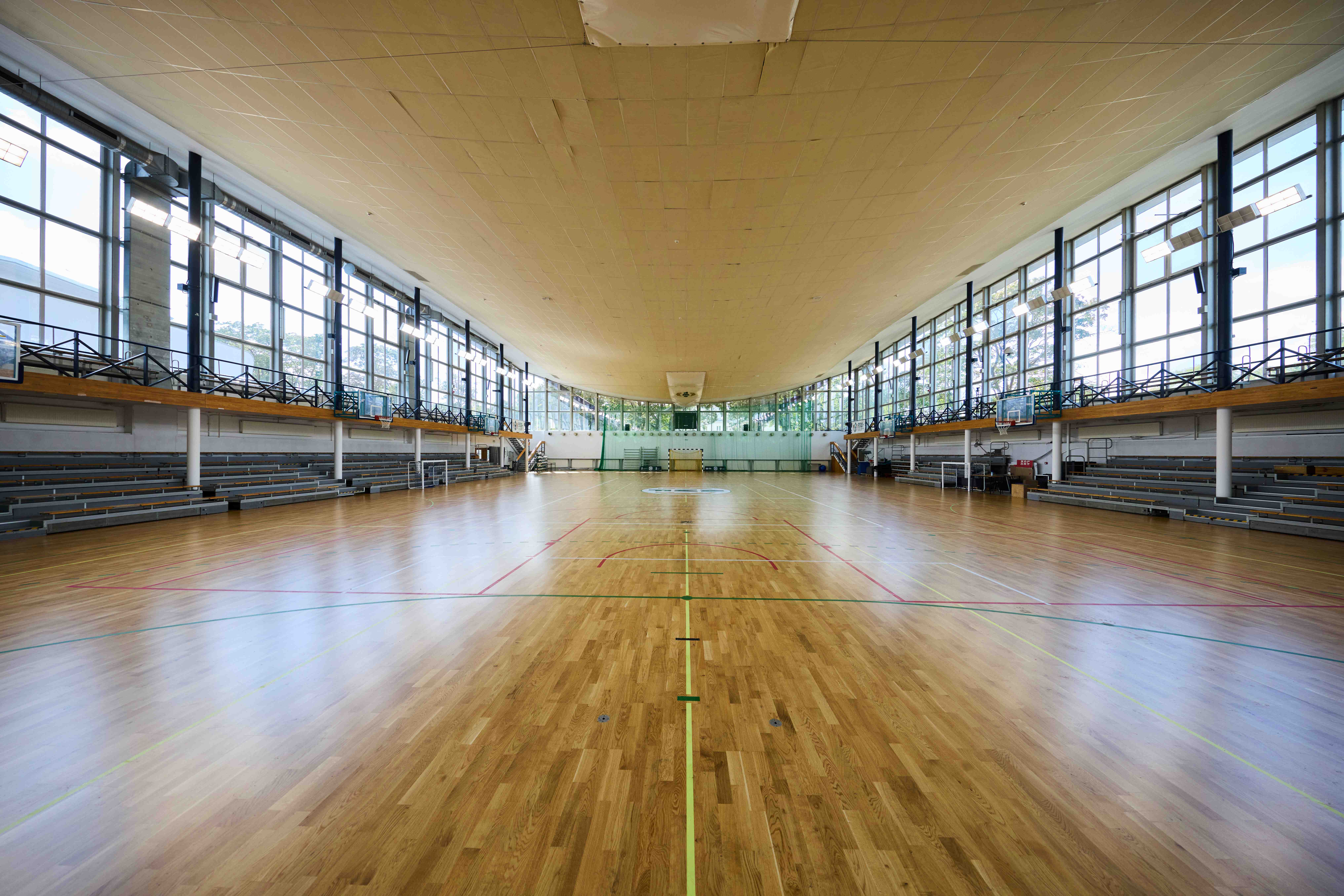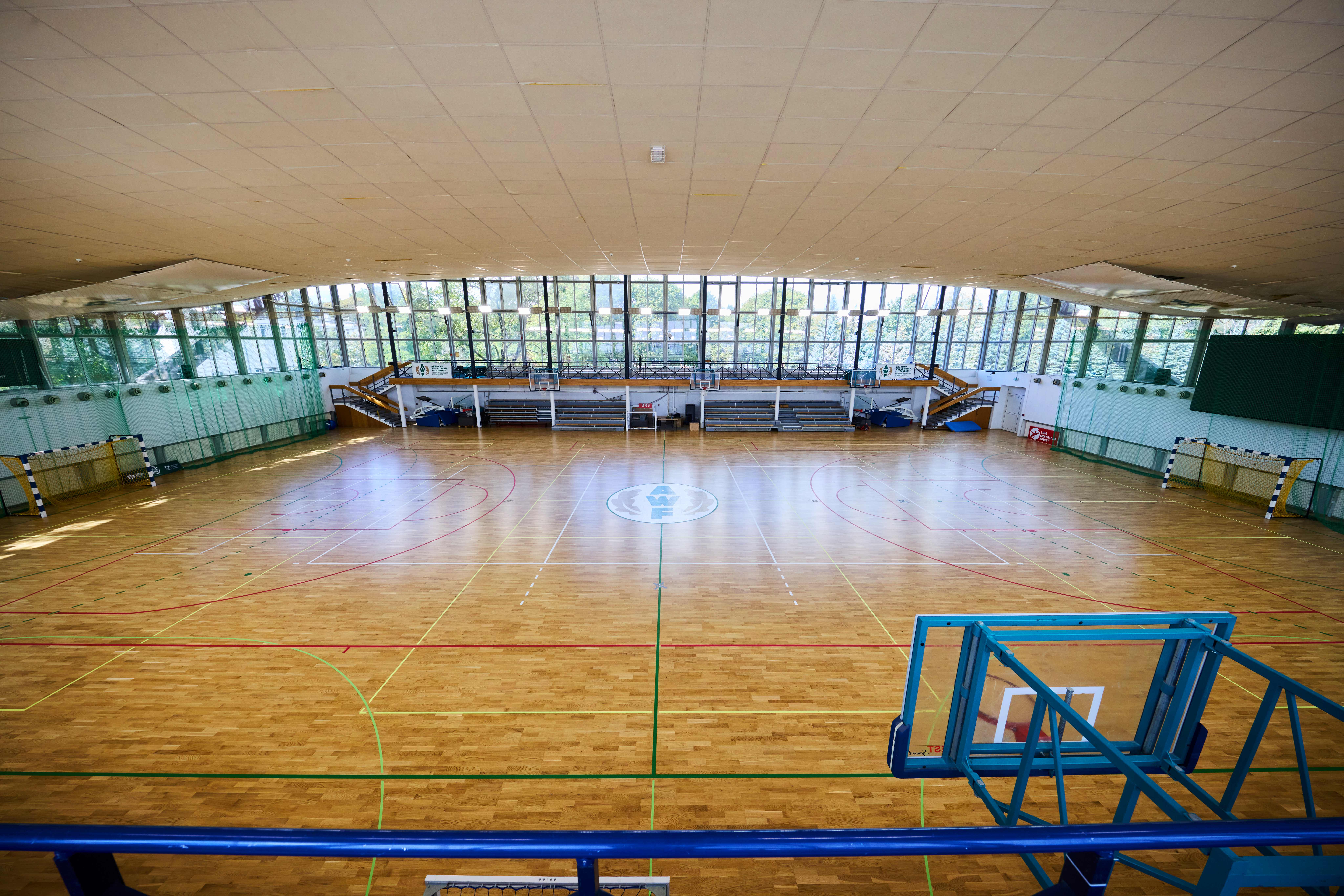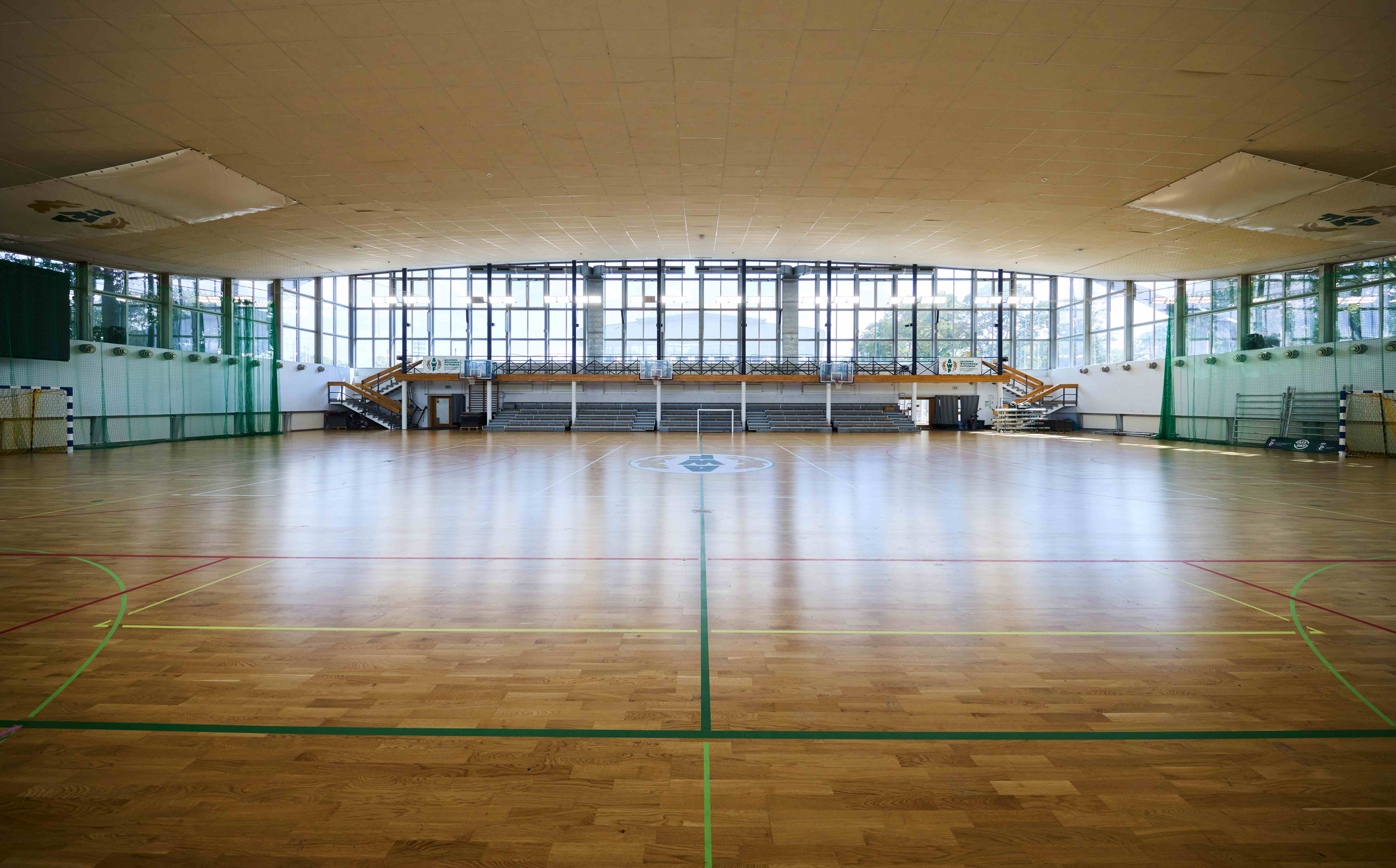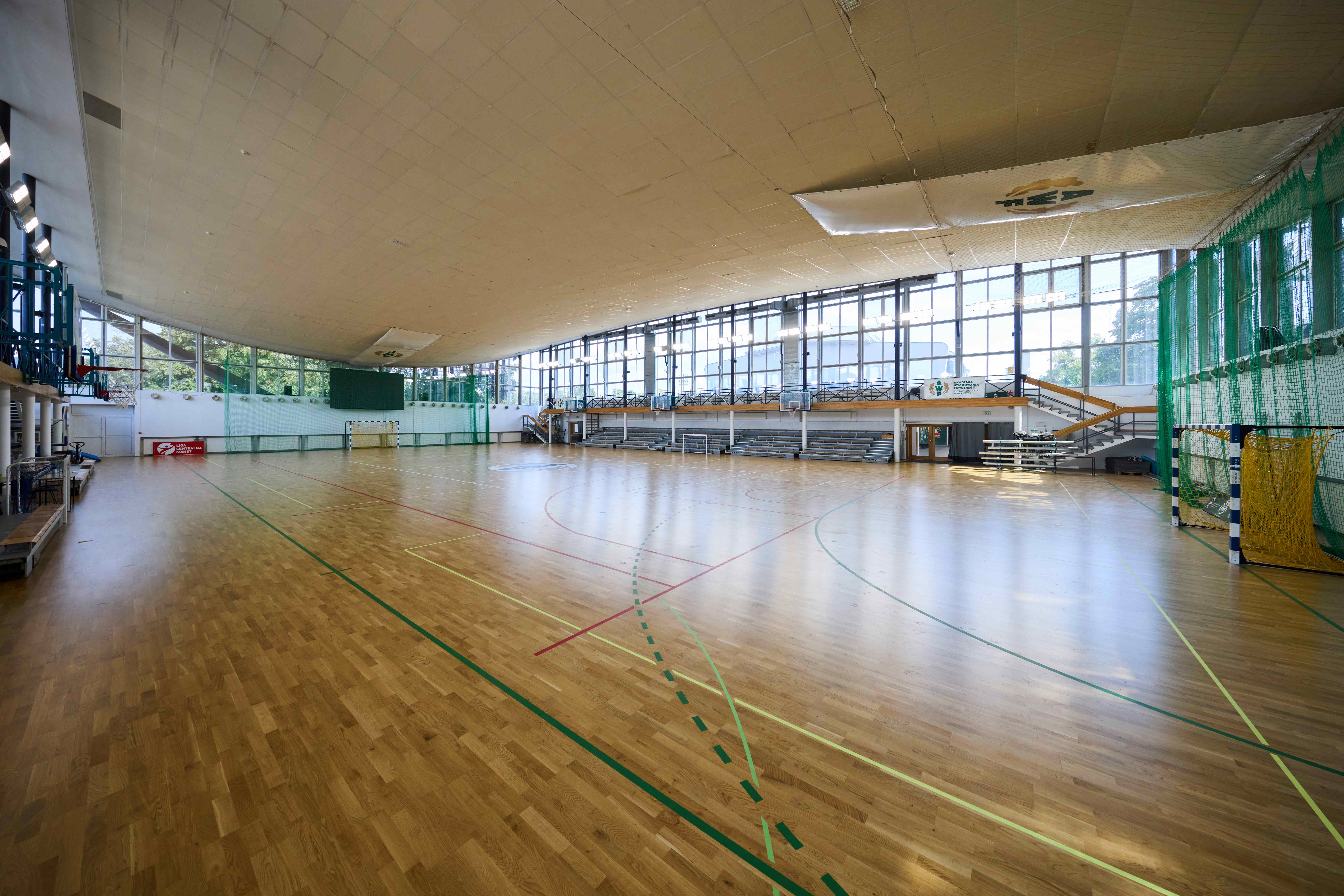 gry zespołowe: koszykówka, piłka ręczna, siatkówka, futsal, nawierzchnia z parkietu